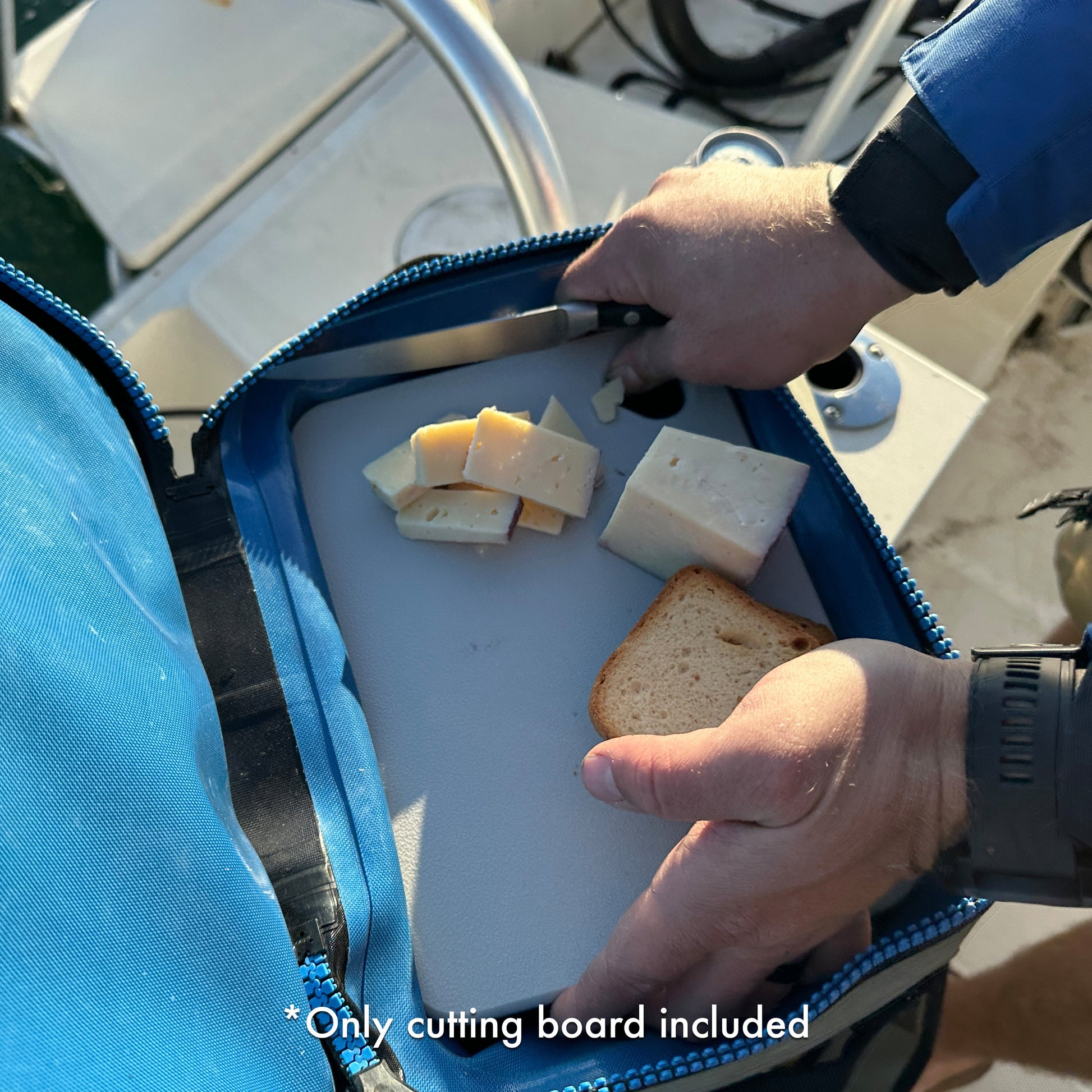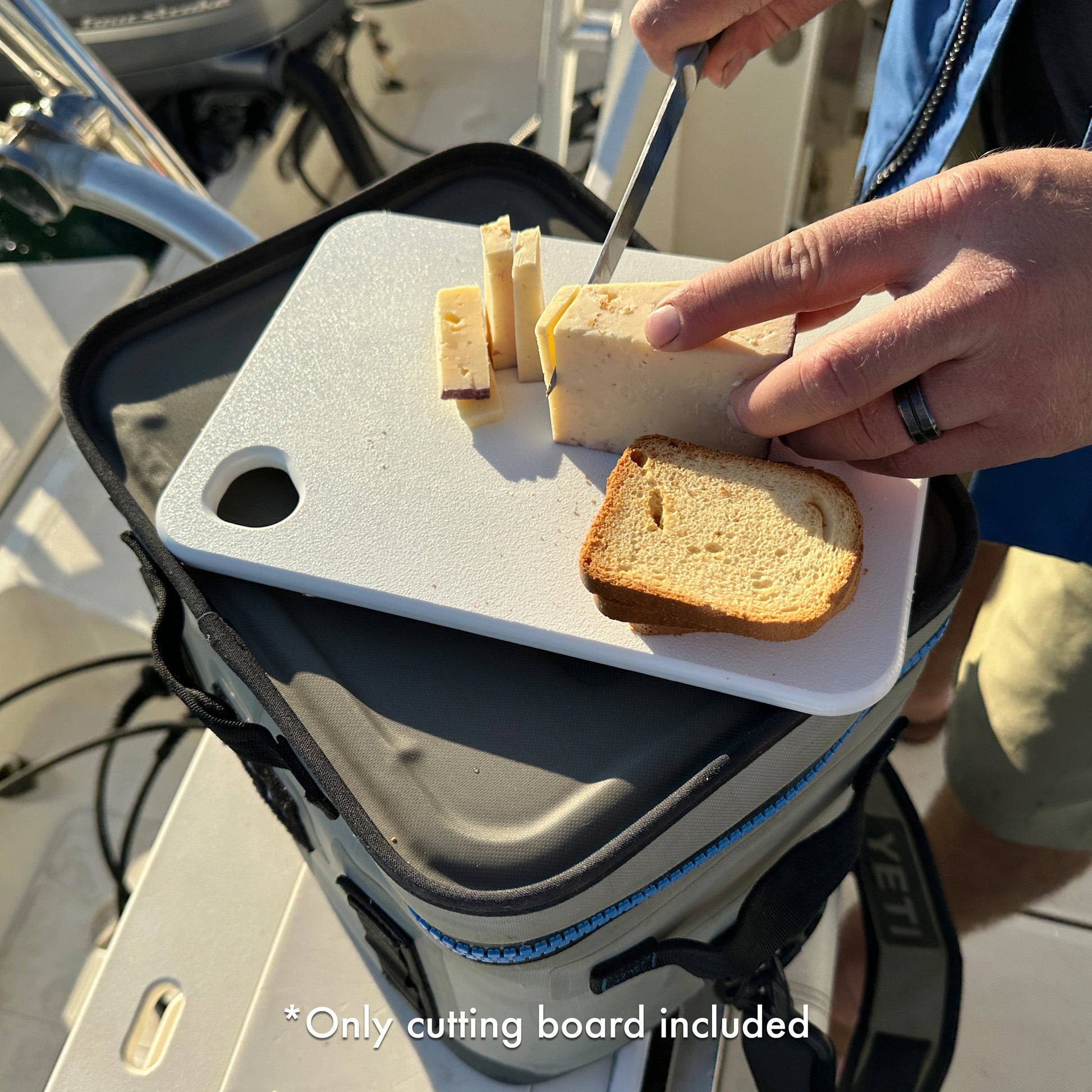 This is a high-quality cutting board or interior divider we have custom-made to fit perfectly in the Yeti Hopper Flip 8, 12, or 18 can Soft Cooler. Perfect for those picnics with cheese and crackers or for cutting up bait for those that bring their coolers fishing!